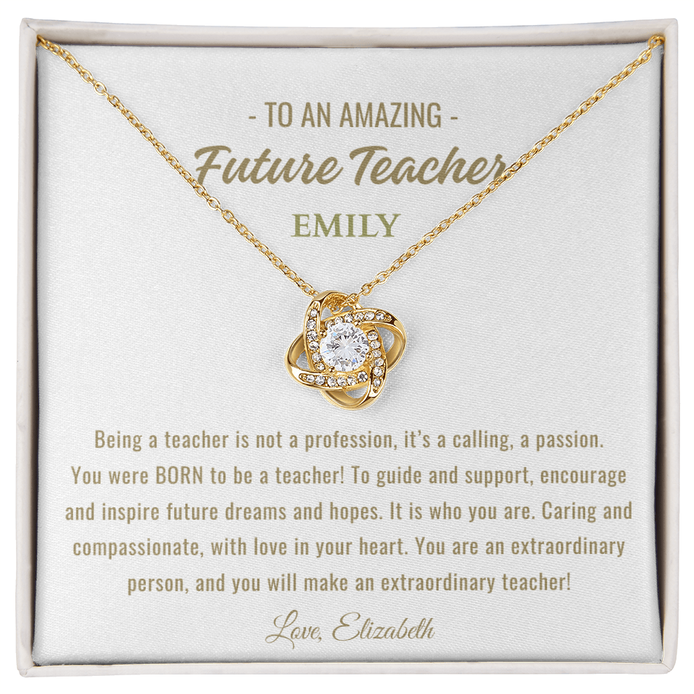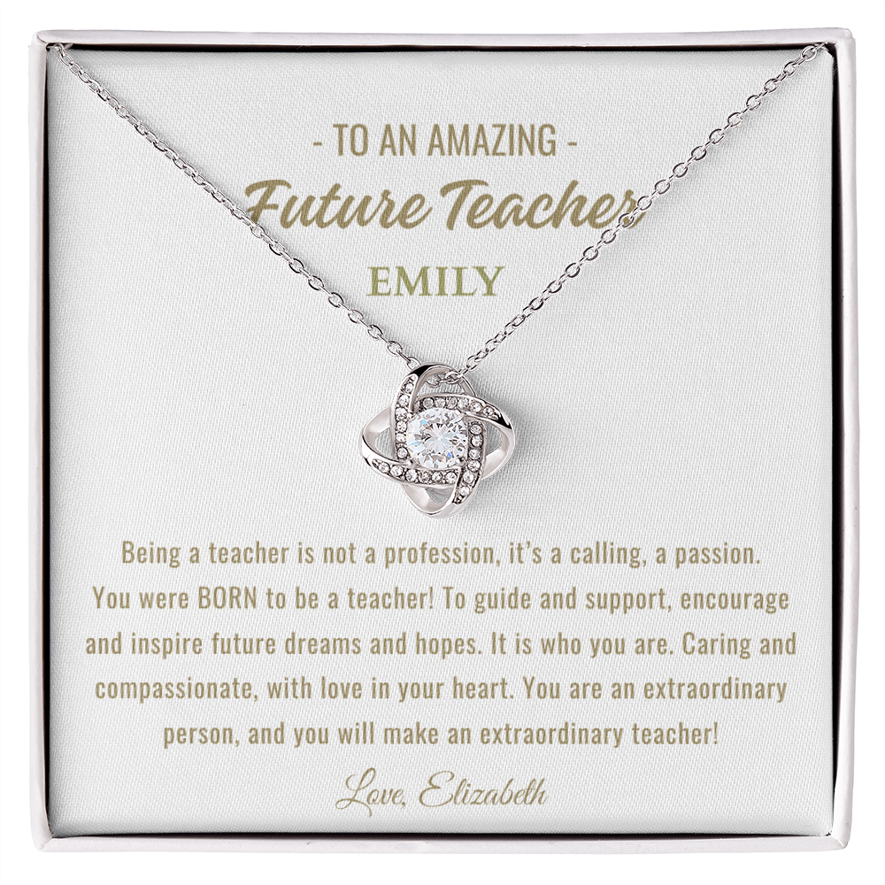 Being a teacher Love Knot Necklace Teaching Degree - Mother Daughter Gift, Daughter Graduation Gift, High School, College Graduate