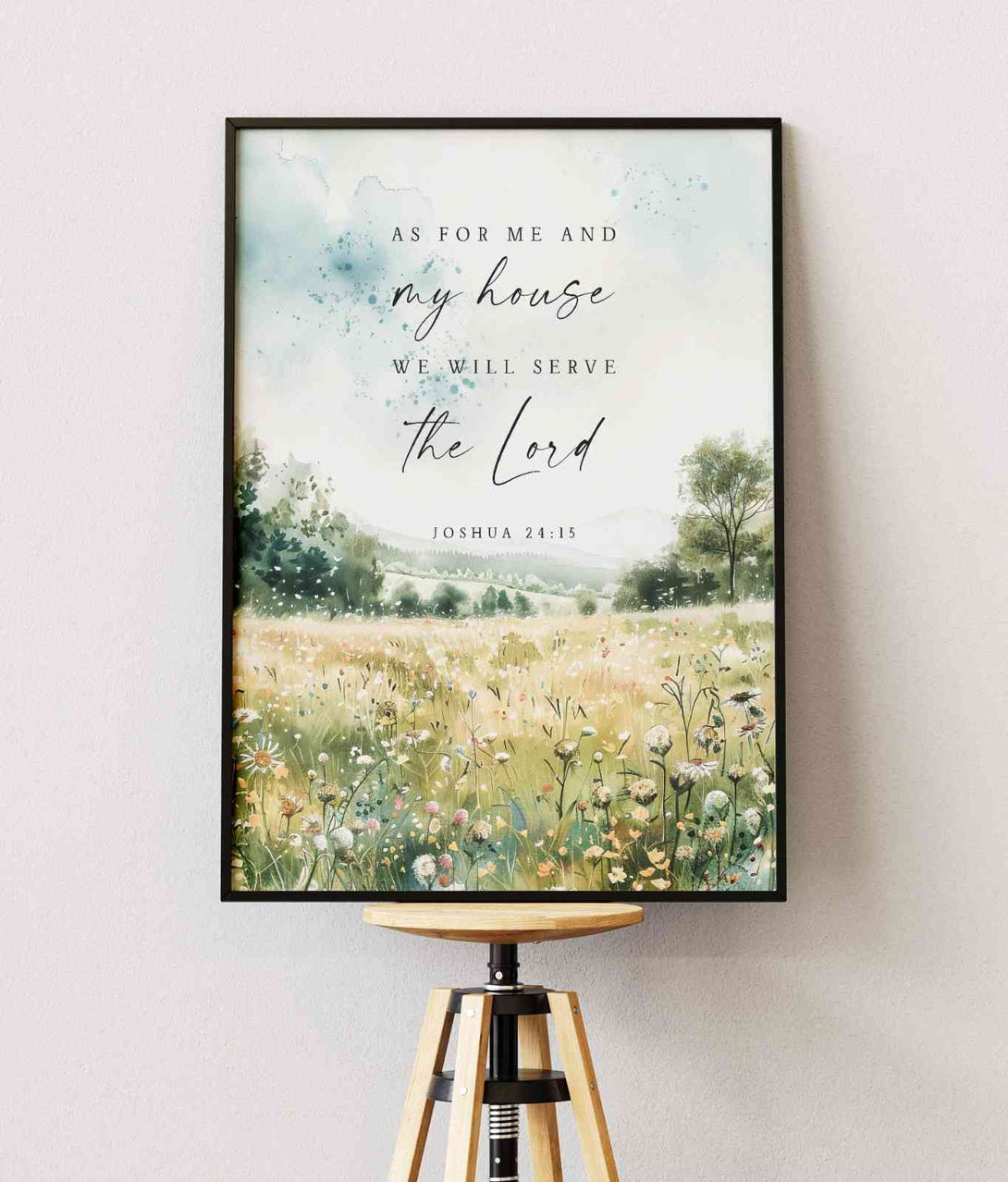Bible Art Print – As for Me and My House | Scripture Wall Art Poster | Joshua 24:15