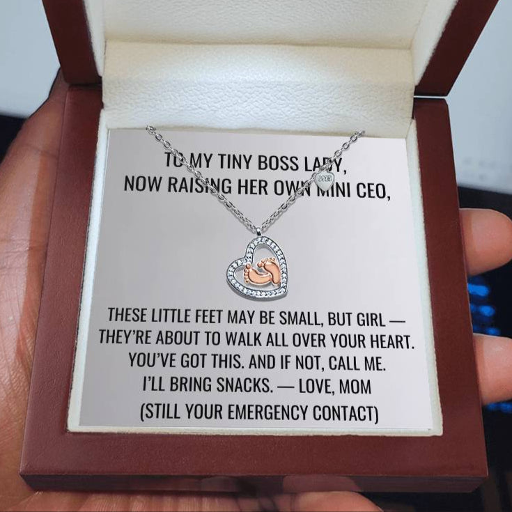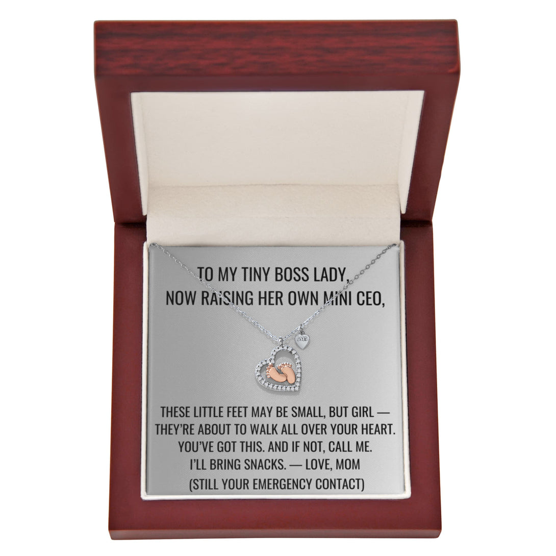 Boss Lady - Baby Feet Heart Necklace First Mother's Day