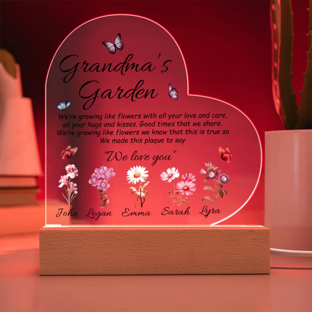 Grandma's Garden - Printed Heart Acrylic Plaque