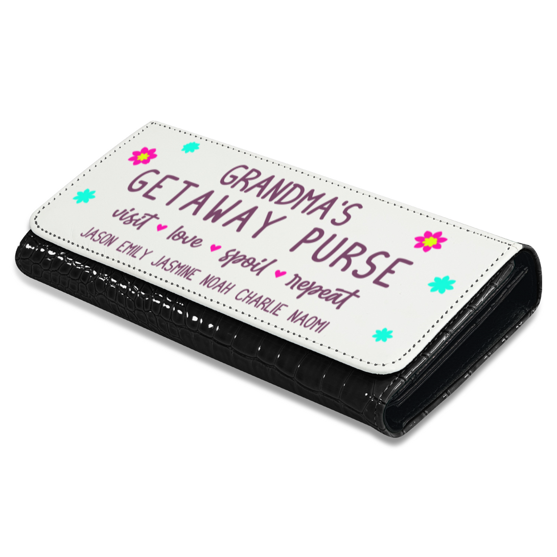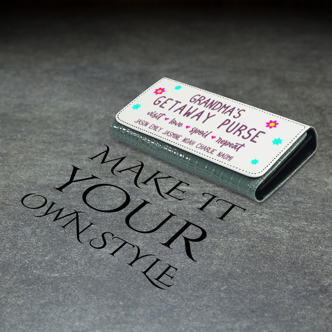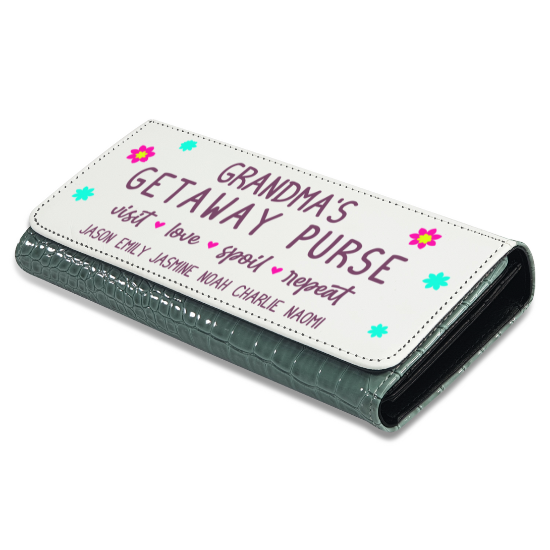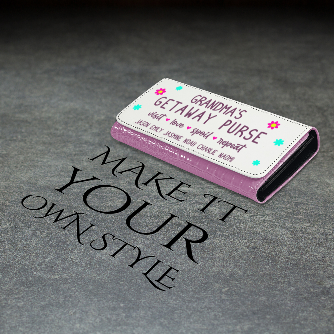 Grandma's Getaway Purse With Kids Names - Faux Crocodile Skin Faux Ladies Purse