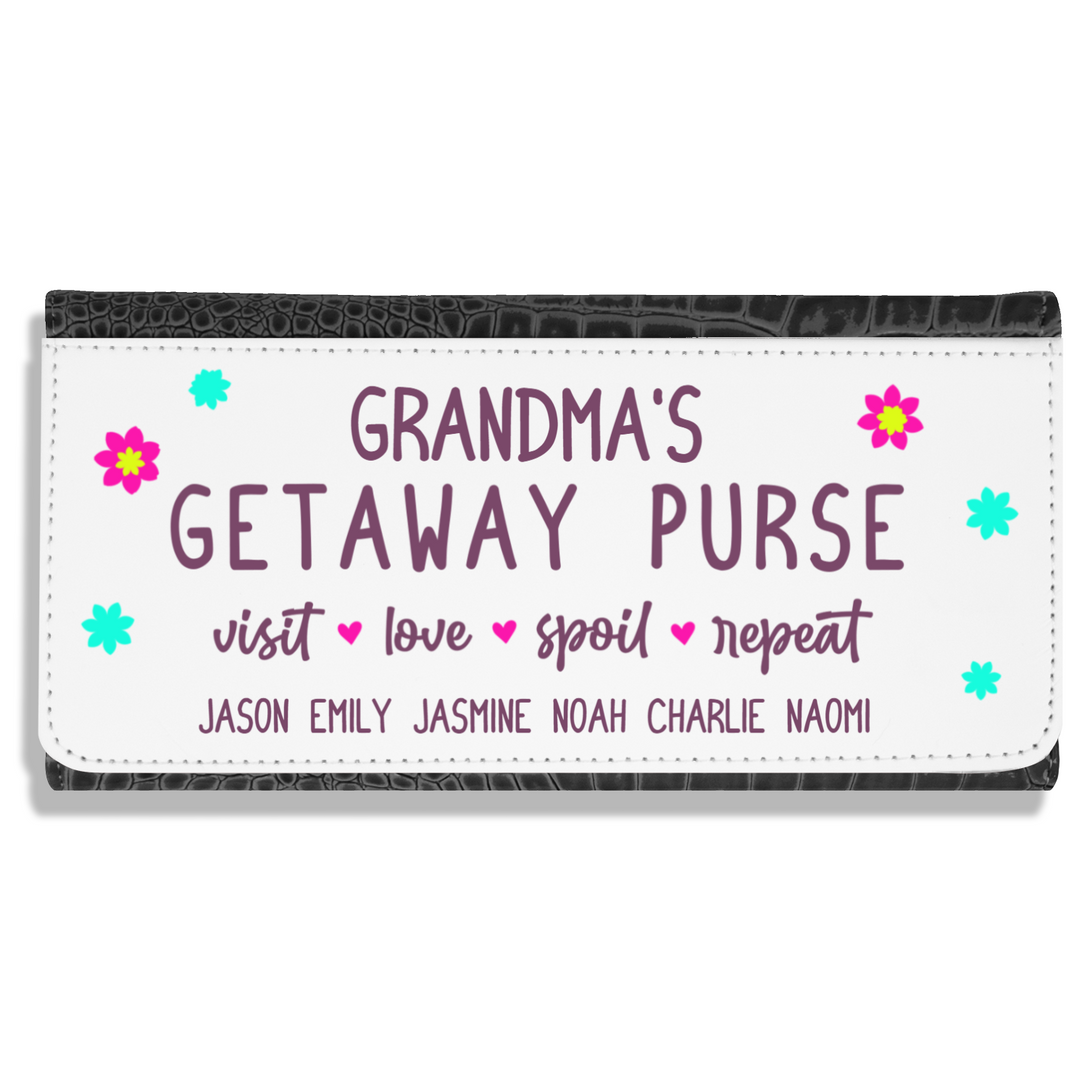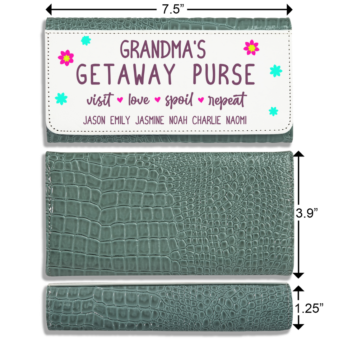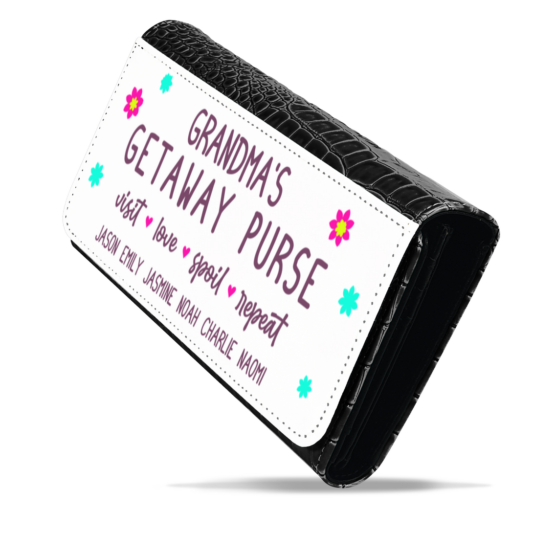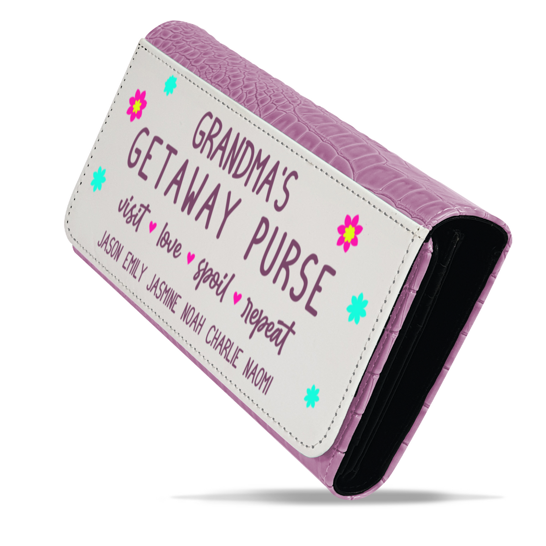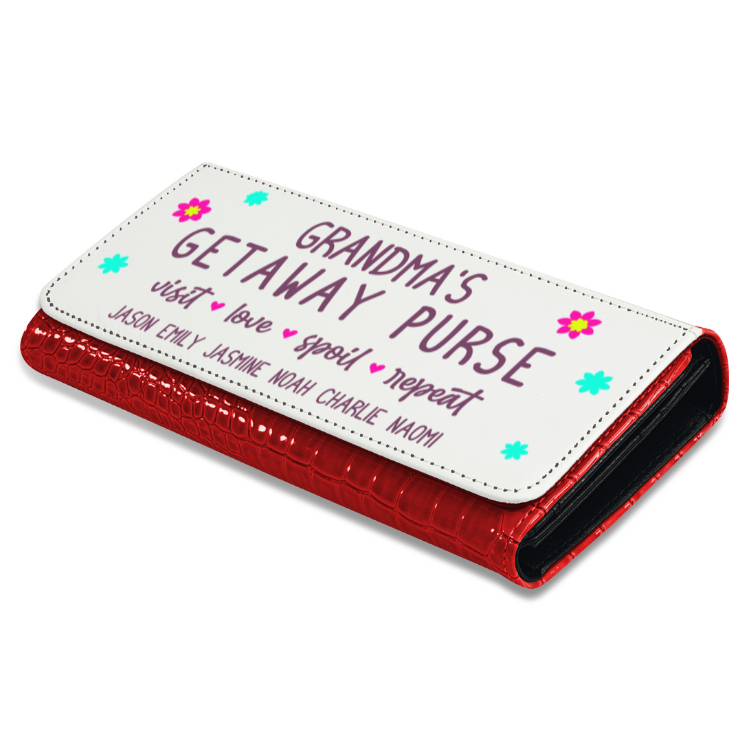 Grandma's Getaway Purse With Kids Names - Faux Crocodile Skin Faux Ladies Purse