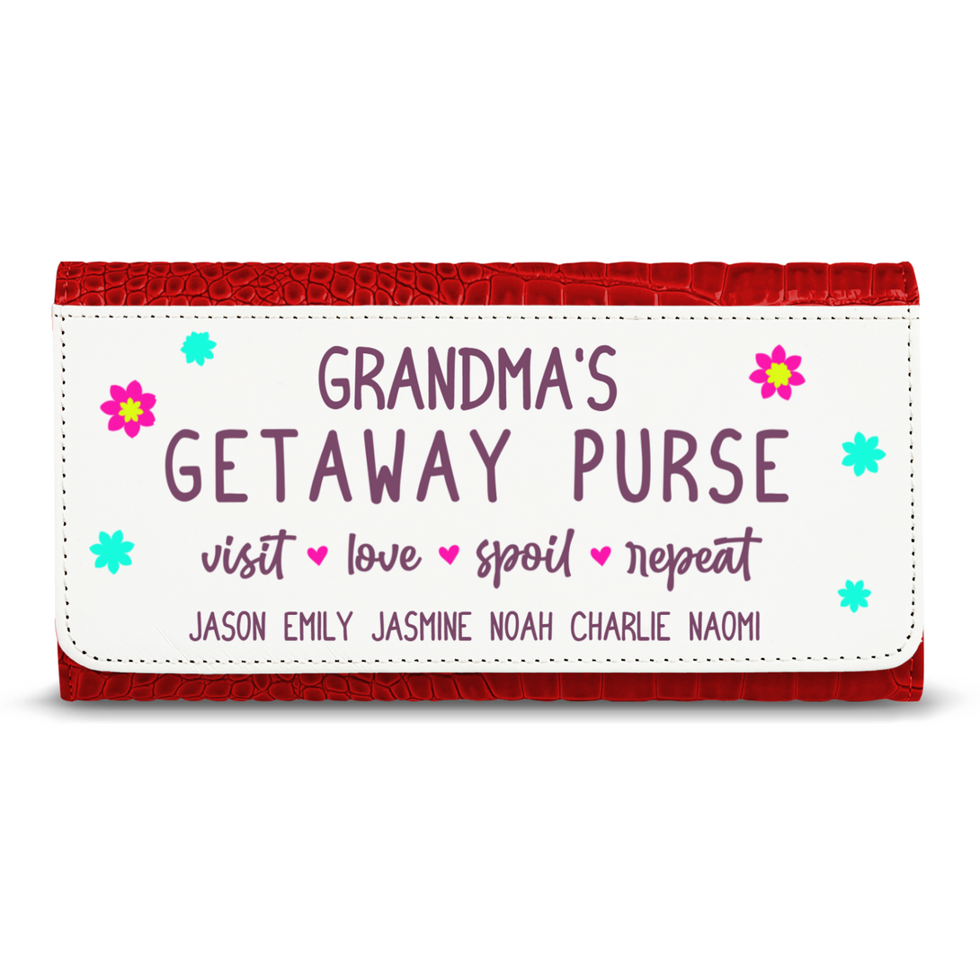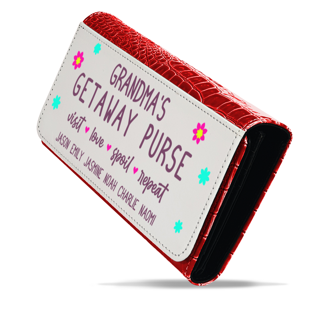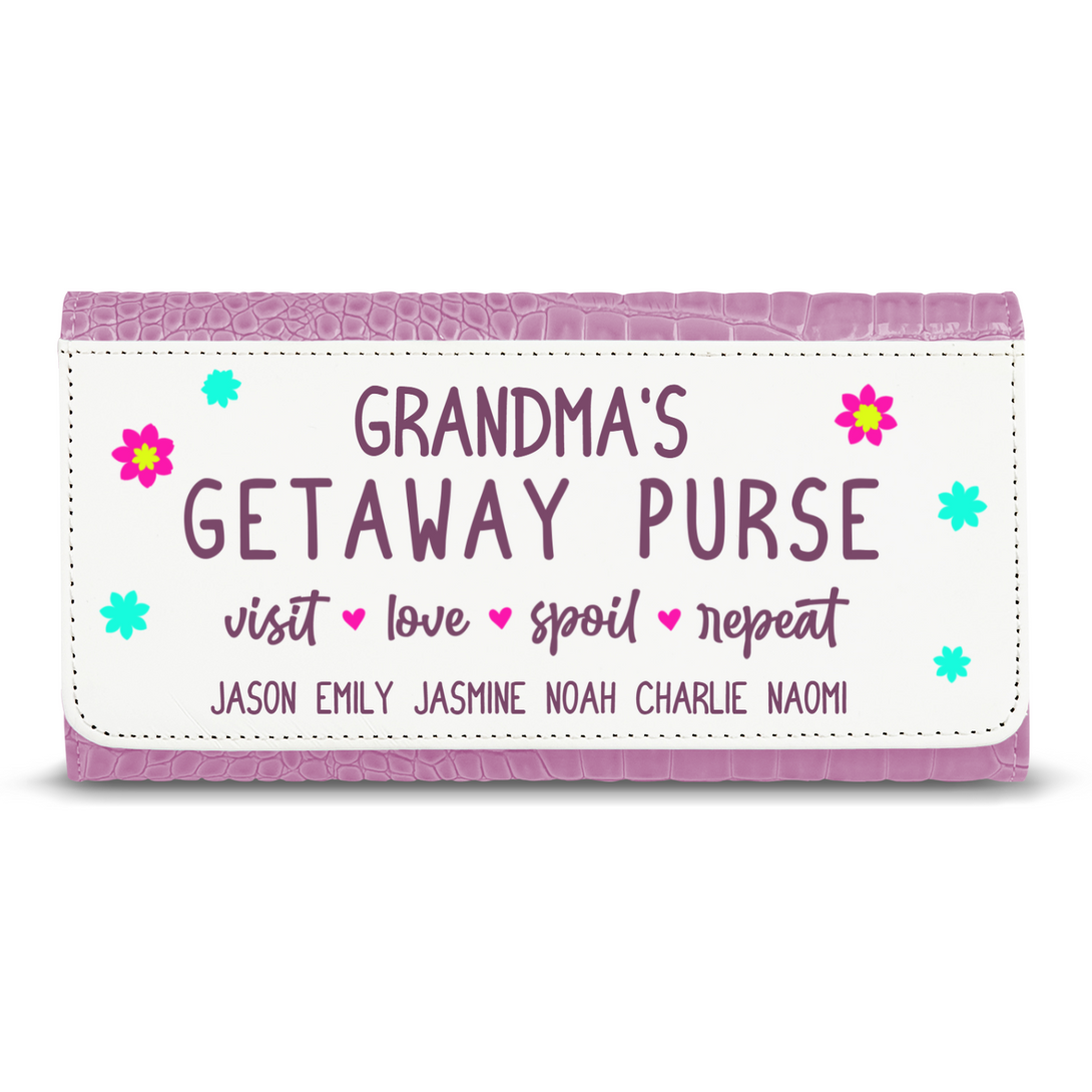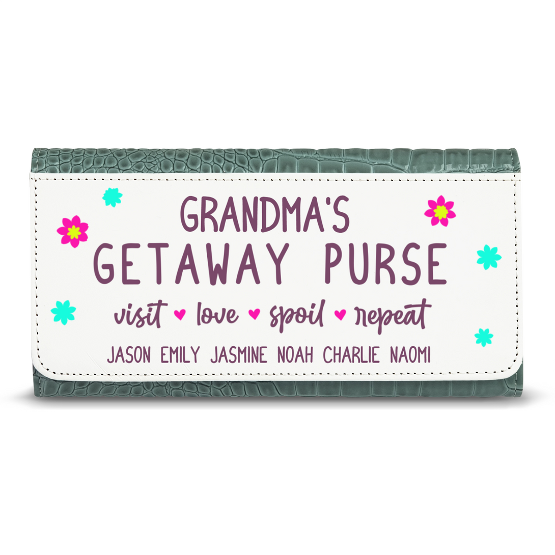 Grandma's Getaway Purse With Kids Names - Faux Crocodile Skin Faux Ladies Purse