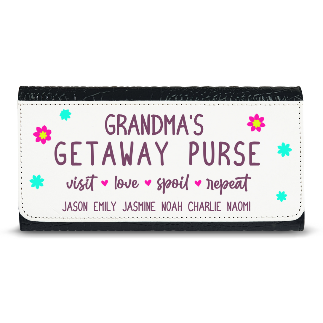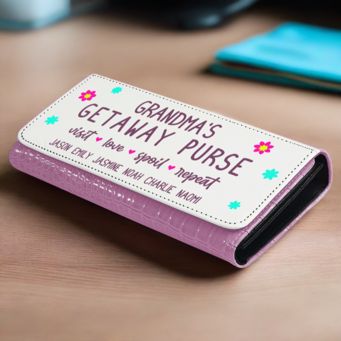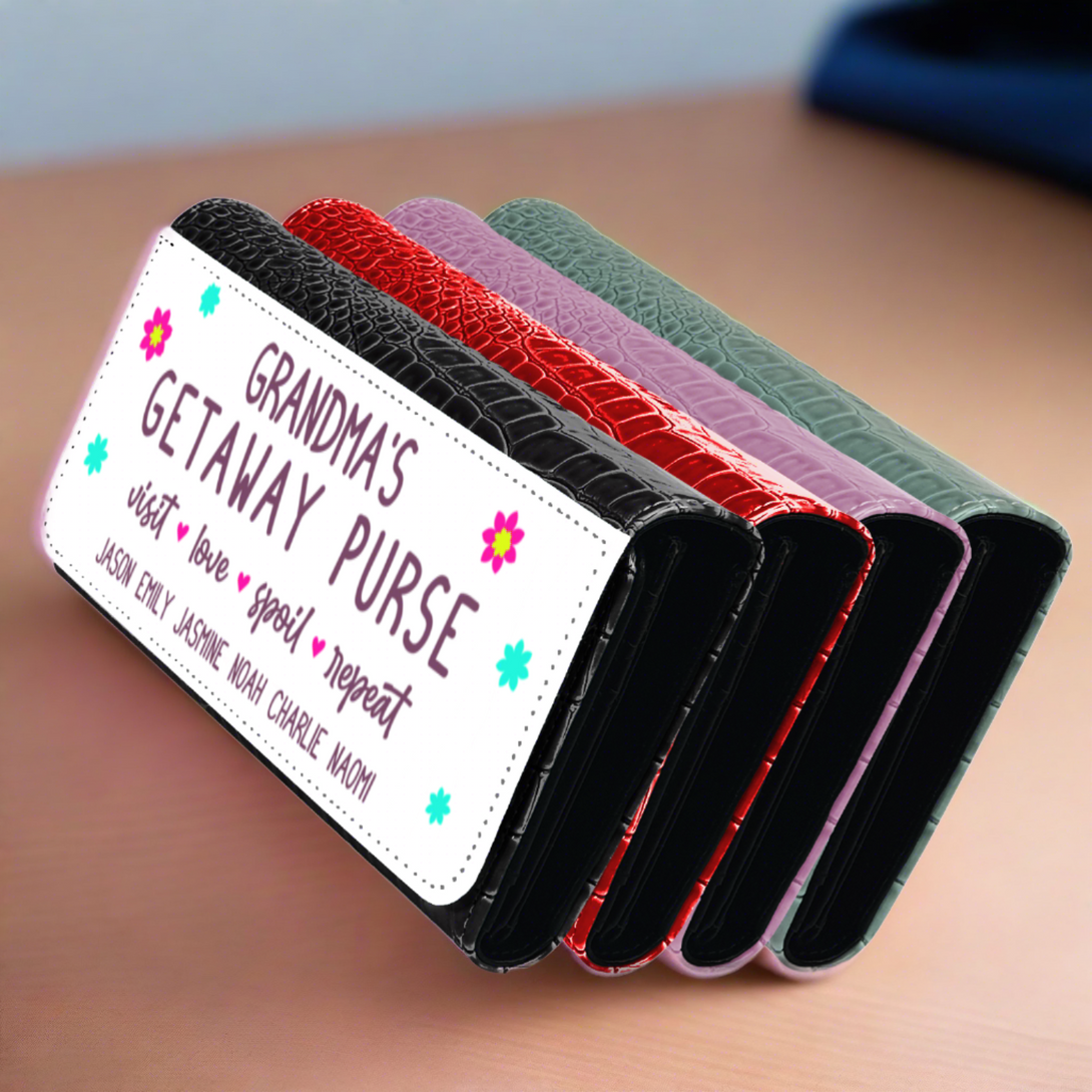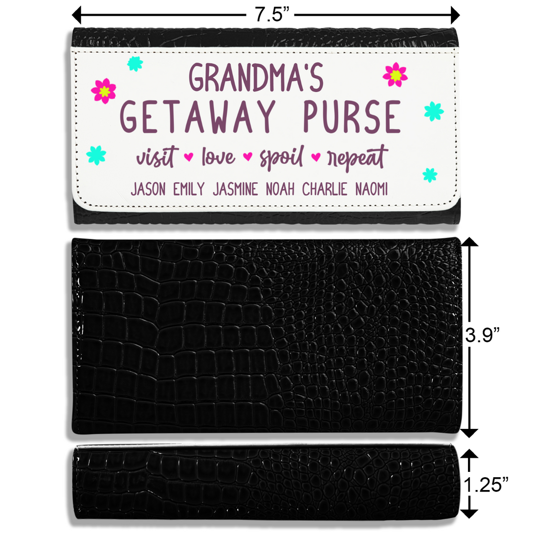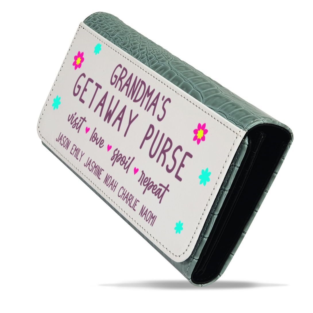 Grandma's Getaway Purse With Kids Names - Faux Crocodile Skin Faux Ladies Purse