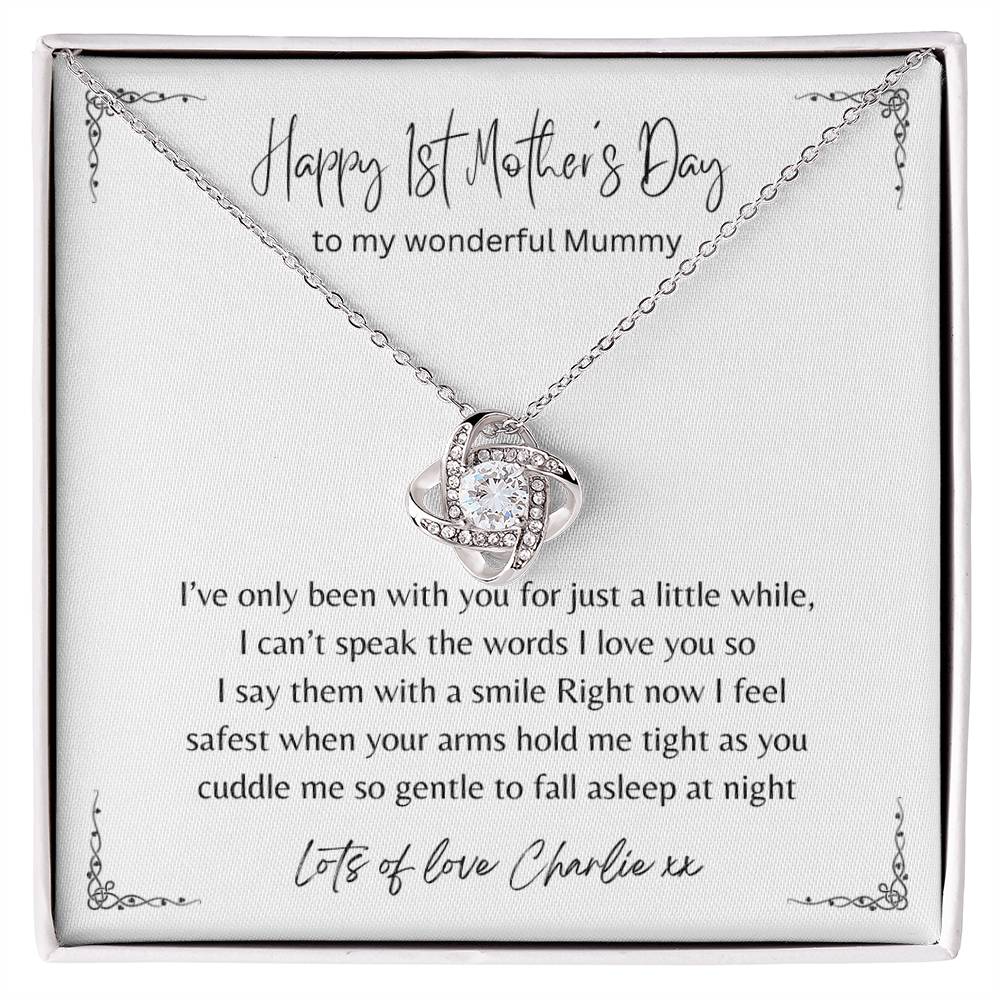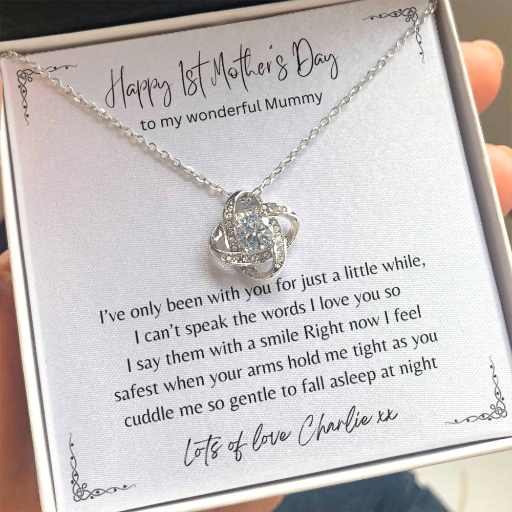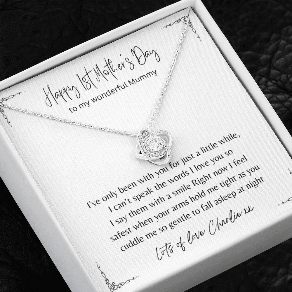 Imagine her reaction receiving this beautiful Love Knot Necklace. Representing an unbreakable bond between two souls, this piece features a beautiful pendant embellished with premium cubic zirconia crystals. Surprise your loved one with this gorgeous gift today!