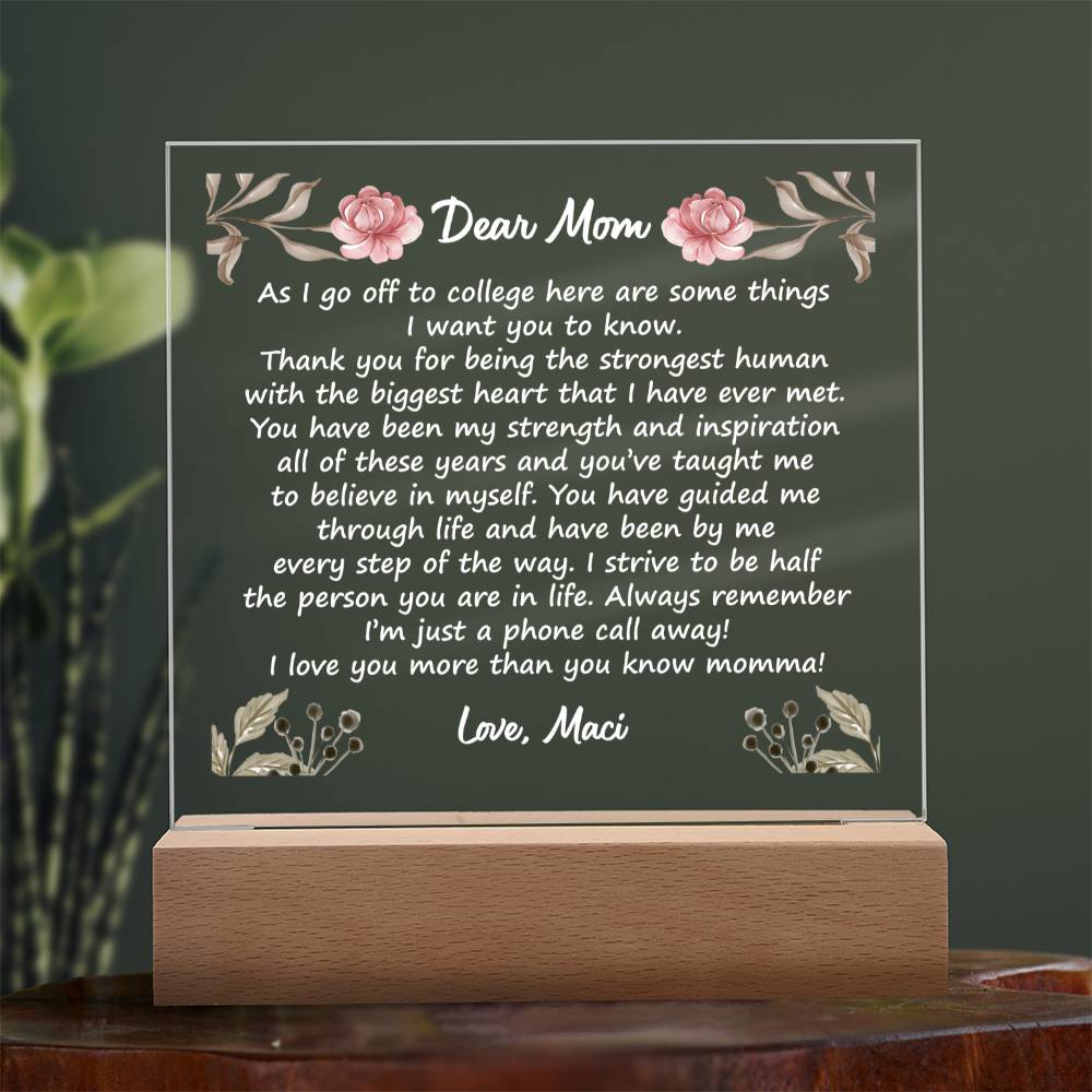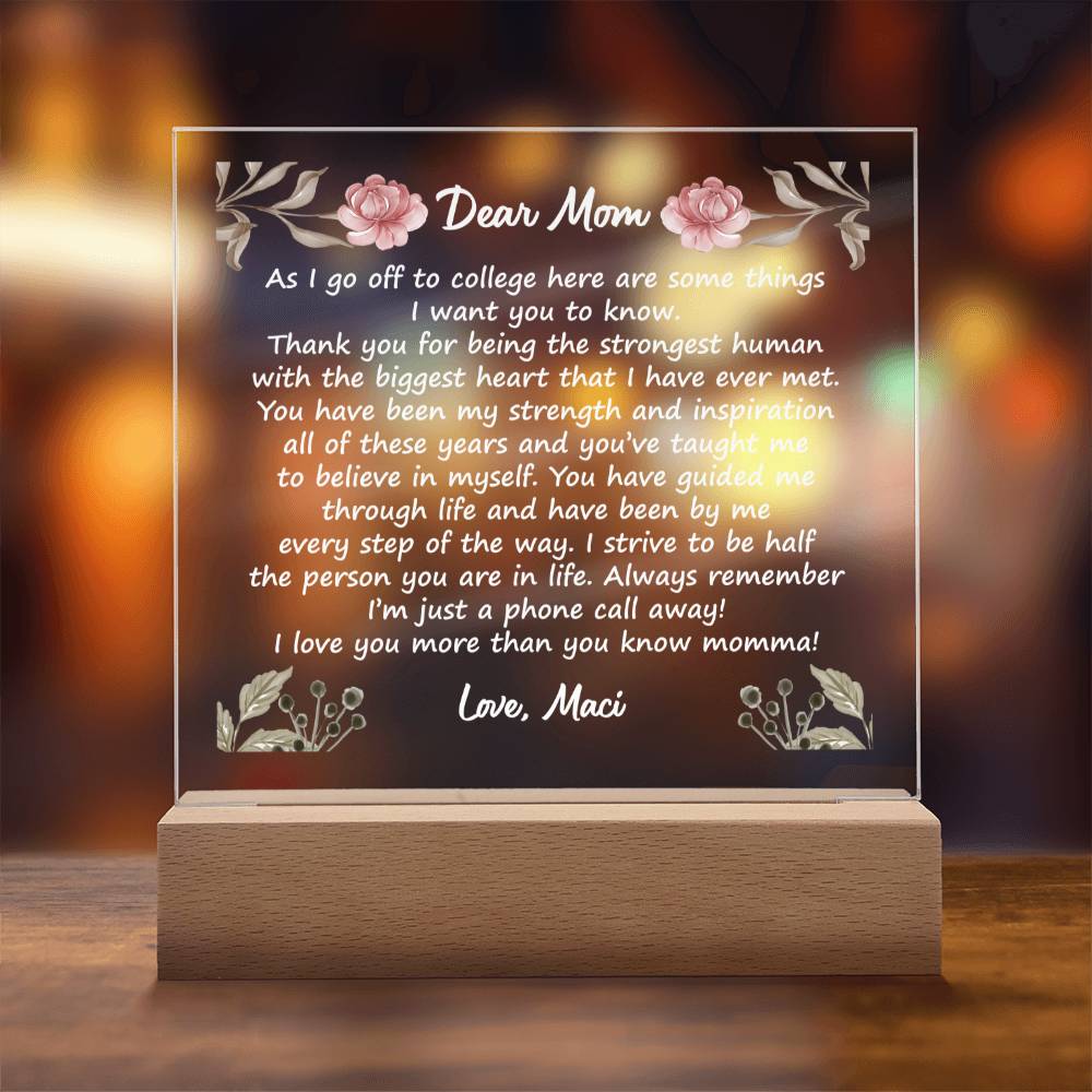 Combine modern technology and a heartfelt message with our Square Acrylic Plaque! This design is printed on crystal-clear premium acrylic and easily becomes the centerpiece of any room. And the contemporary design wouldn't be complete without its sleek wooden base, elevating the display that will instantly become a conversation starter. Create a memorable presentation when you upgrade to the LED wooden base! This is the ideal present for your beloved partner, family members, or dear friends on special occasions like anniversaries, birthdays, or any occasion where you want to express your love and appreciation in an unforgettable way. Let your loved ones know how much they mean to you by purchasing today!