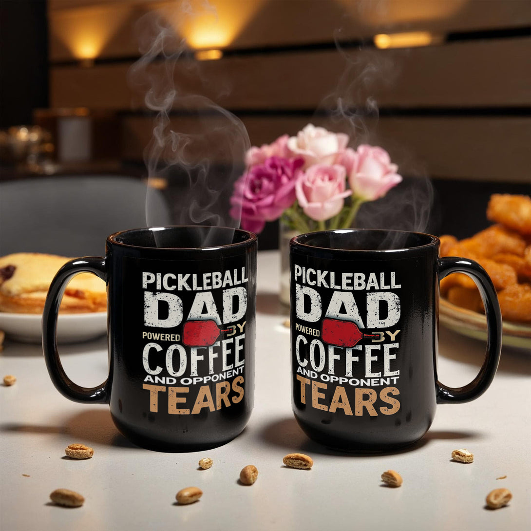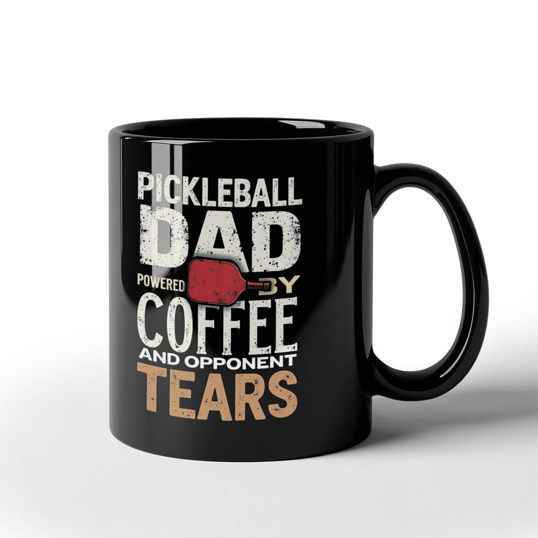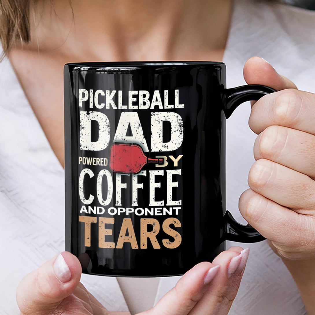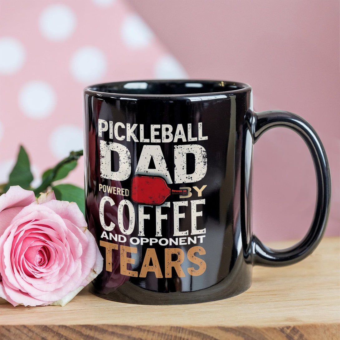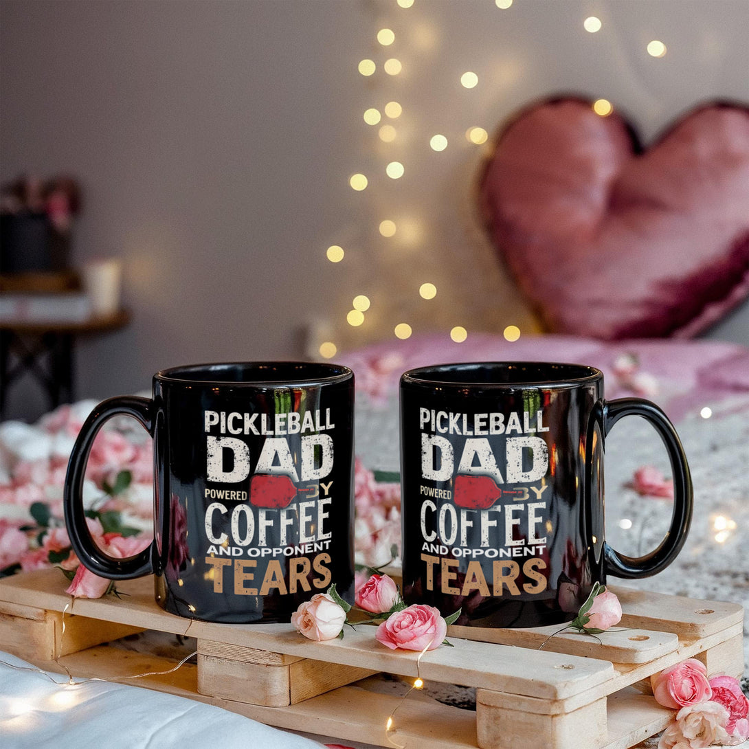 Pickleball Dad Powered by Coffee And Opponent Tears - 11 & 15 oz Black Mugs