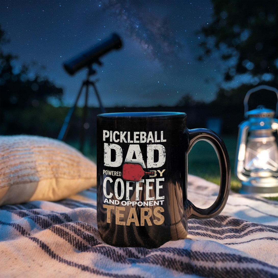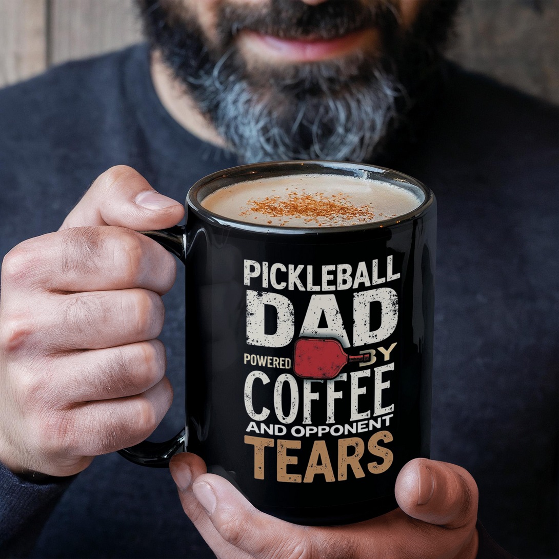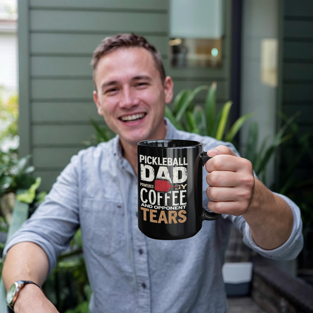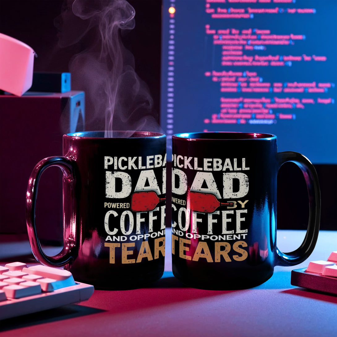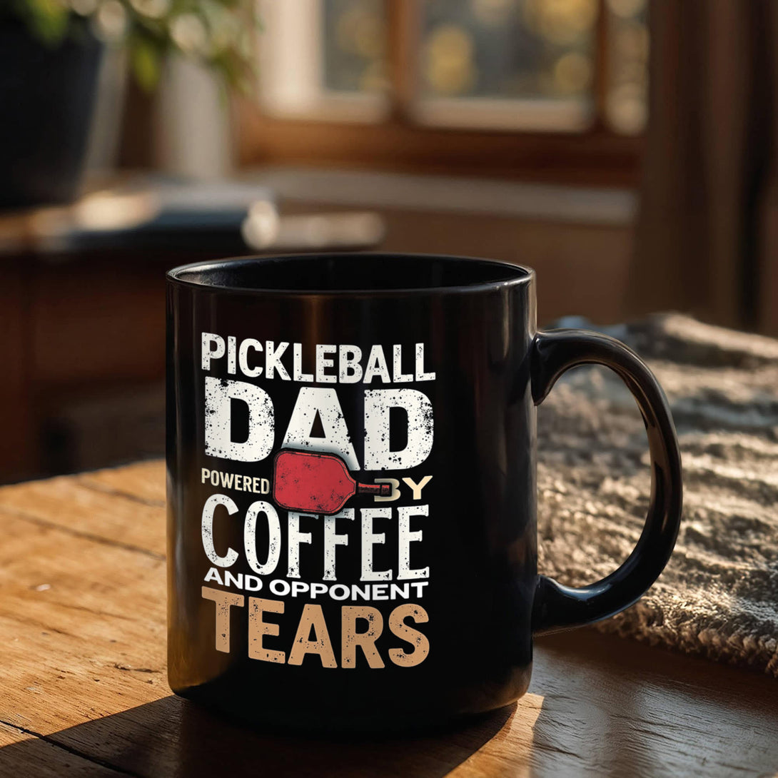 Pickleball Dad Powered by Coffee And Opponent Tears - 11 & 15 oz Black Mugs