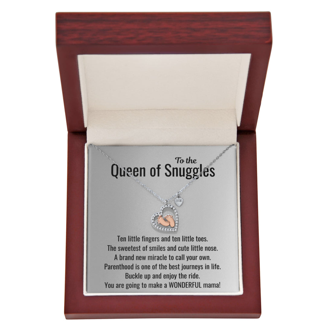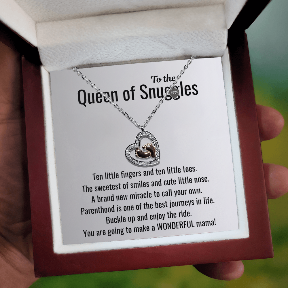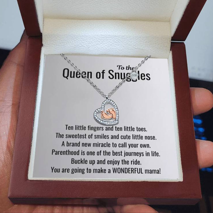 Queen Of Snuggles - Baby Feet Heart Necklace First Mother's Day