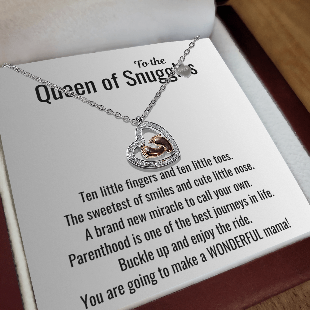 Almost Sold Out – Queen Of Snuggles - Baby Feet Heart Necklace First Mother's Day
