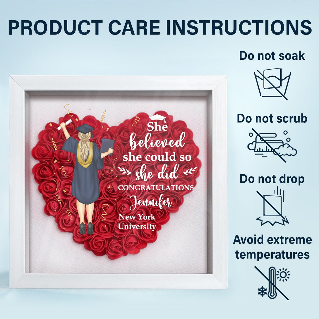 She Believed She Could - Graduation Gift, Gift For Friends - Personalized Flower Shadow Box