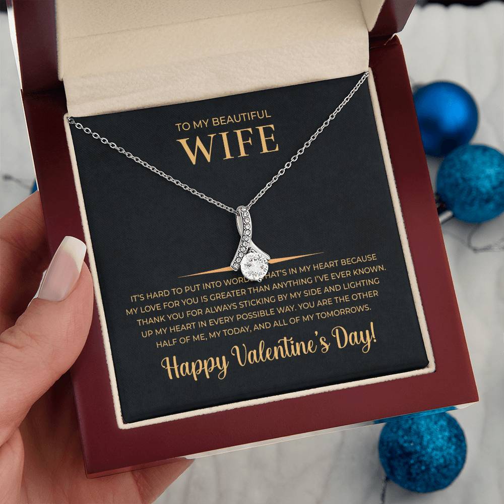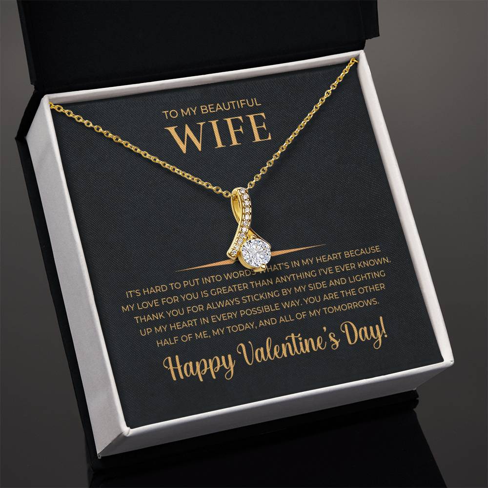 Imagine her reaction when she opens this stunning gift! The Alluring Beauty necklace features a petite ribbon shaped pendant that is sure to dazzle your special someone. Whether it's a birthday or anniversary, make sure to get her a gift she will love for years to come.