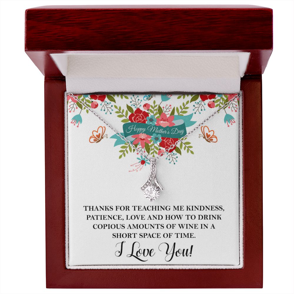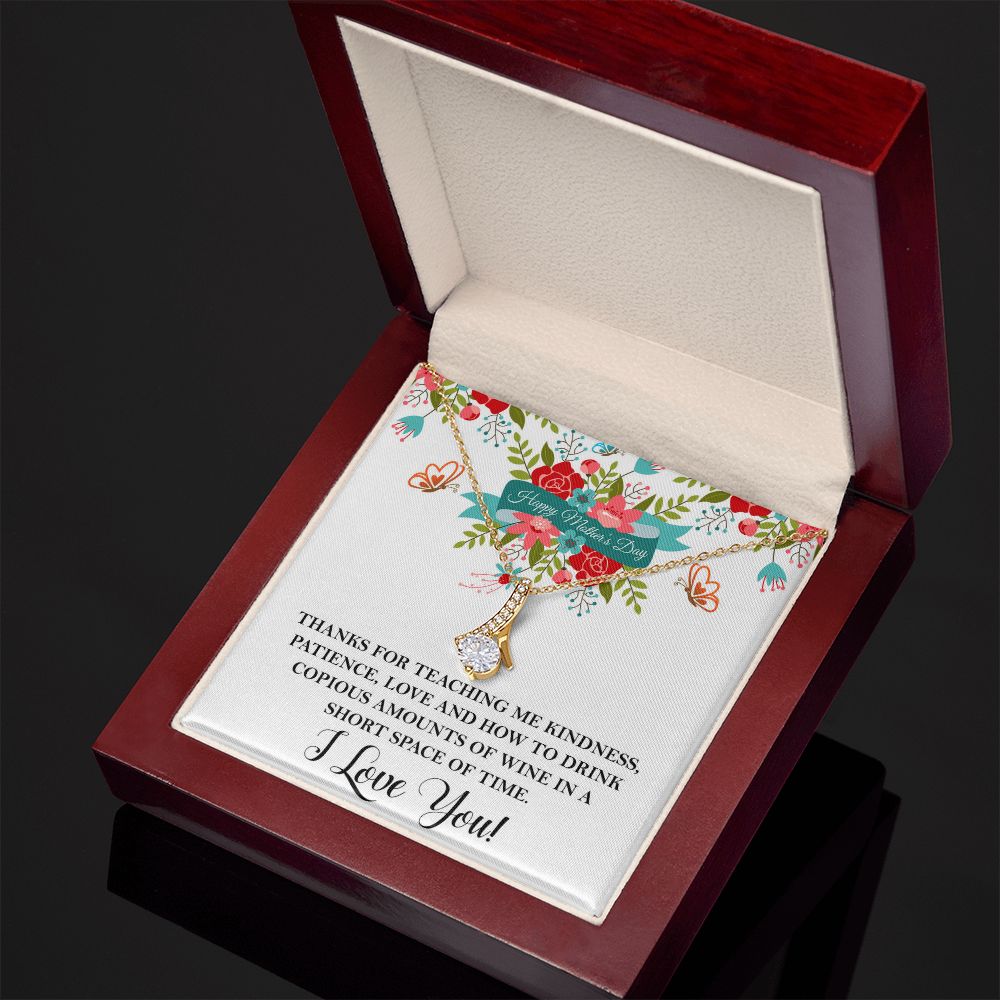 Imagine her reaction when she opens this stunning gift! The Alluring Beauty necklace features a petite ribbon shaped pendant that is sure to dazzle your special someone. Whether it's a birthday or anniversary, make sure to get her a gift she will love for years to come.
