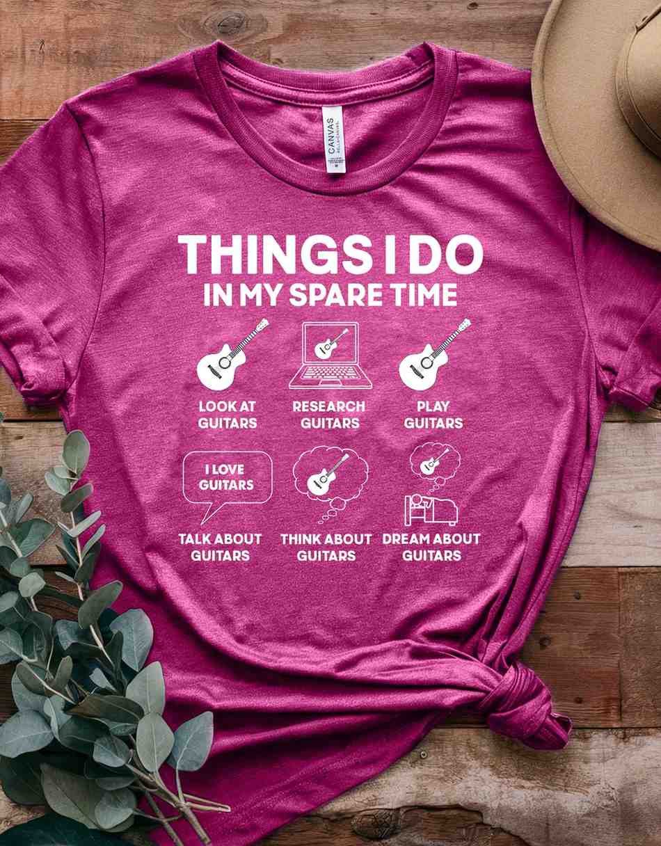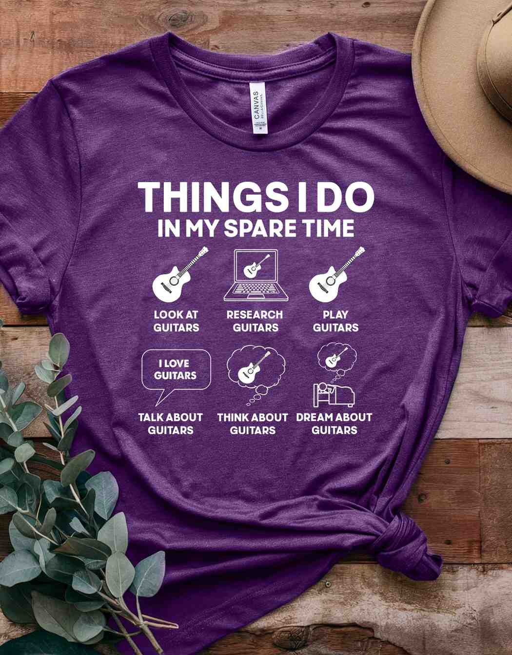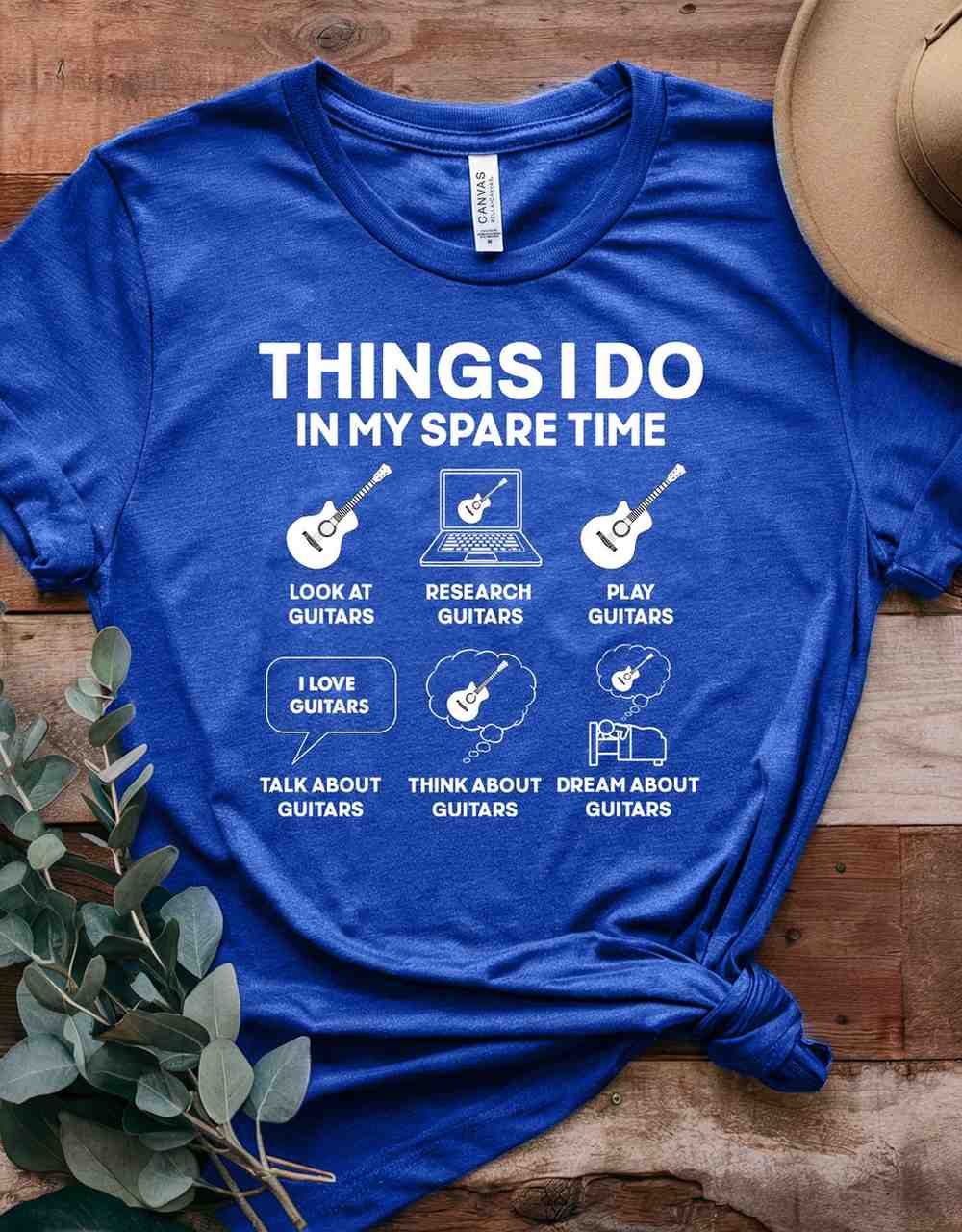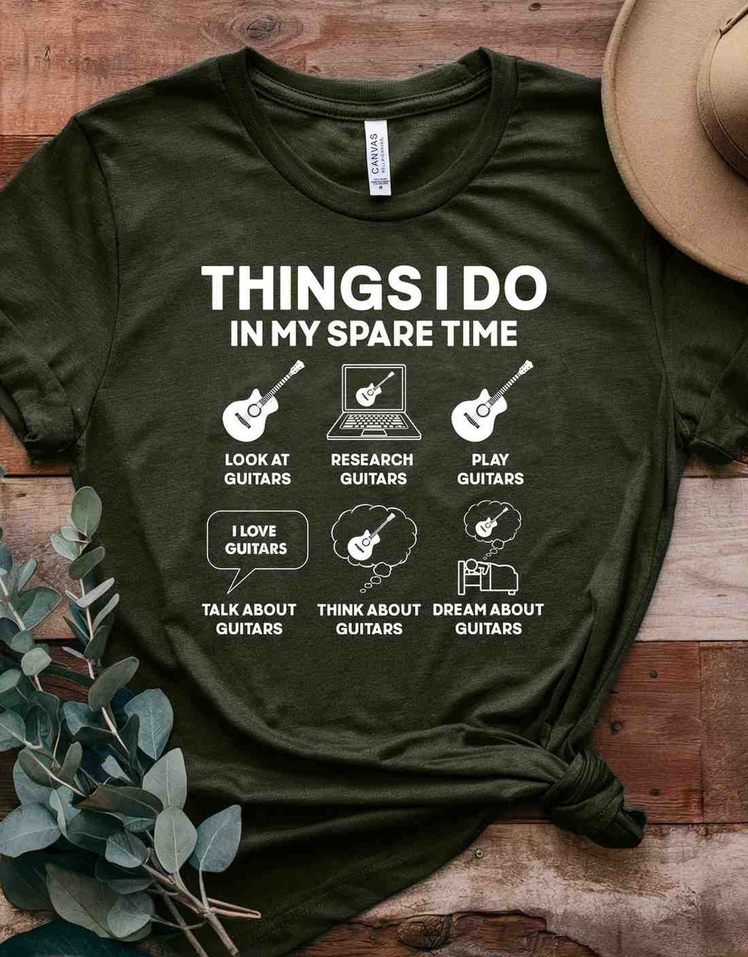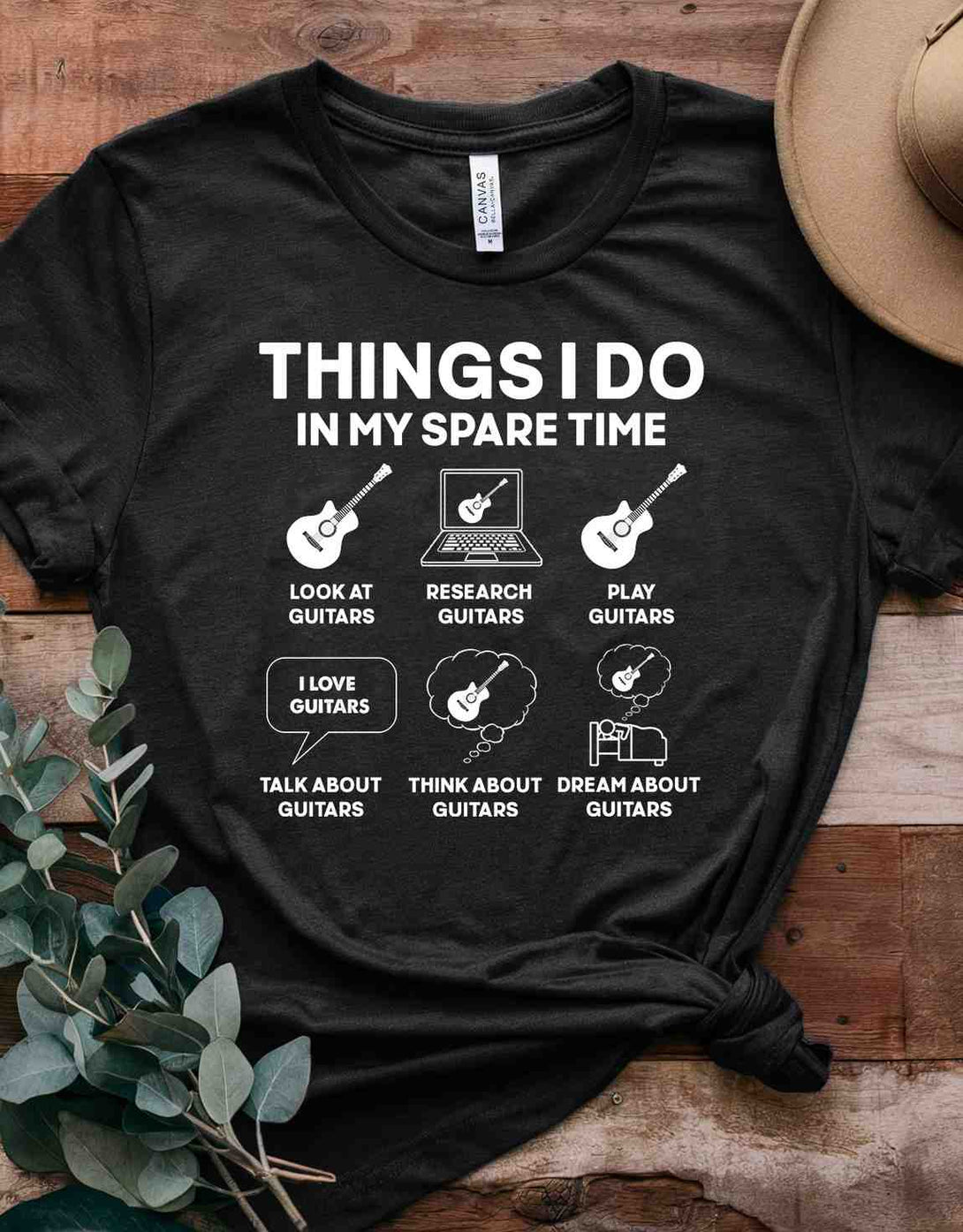 Whether you're jamming in your garage, playing gigs, or just noodling around, this tee is for true guitar lovers. From acoustic vibes to electric solos, it speaks the language of six strings and spare time well spent.