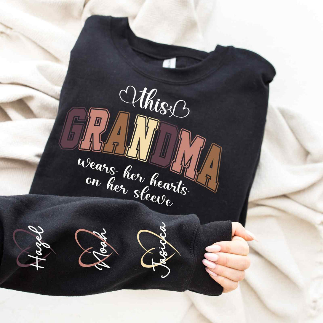 Celebrate personalized gifts for Grandma or Mom's greatest blessings with our custom sweatshirt featuring her grandchildren's names elegantly displayed down the sleeve. Made from premium soft cotton blend for maximum comfort, this cozy sweatshirt lets Grandma proudly wear her family close to her heart. Each name is beautifully printed on our classic, relaxed-fit design. Available in multiple colors and sizes. The perfect heartfelt gift that Mom/Grandma will treasure and wear with pride all year round.