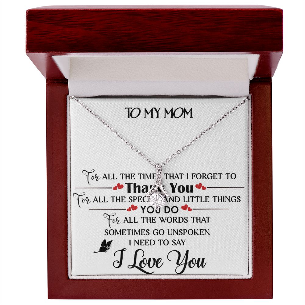 Imagine her reaction when she opens this stunning gift! The Alluring Beauty necklace features a petite ribbon shaped pendant that is sure to dazzle your special someone. Whether it's a birthday or anniversary, make sure to get her a gift she will love for years to come.