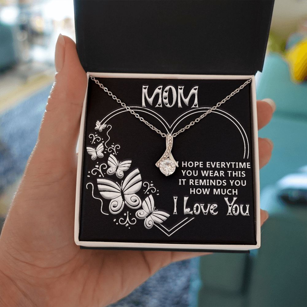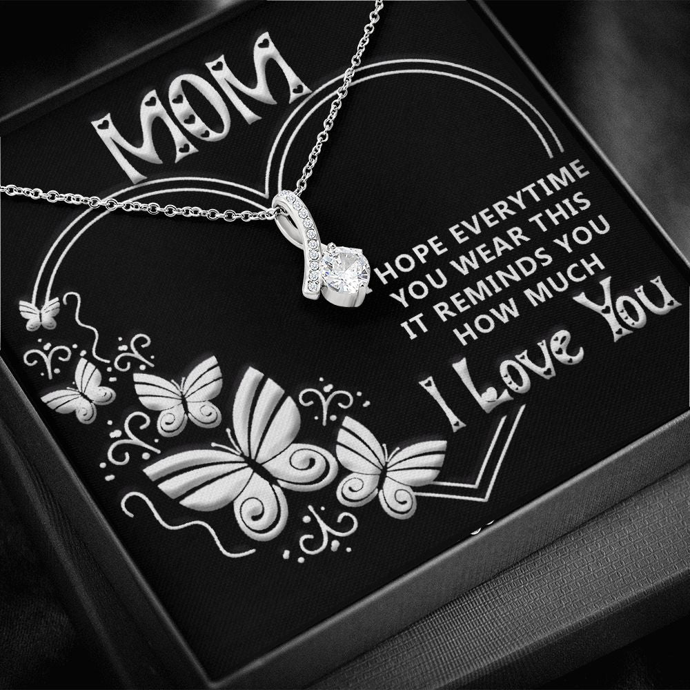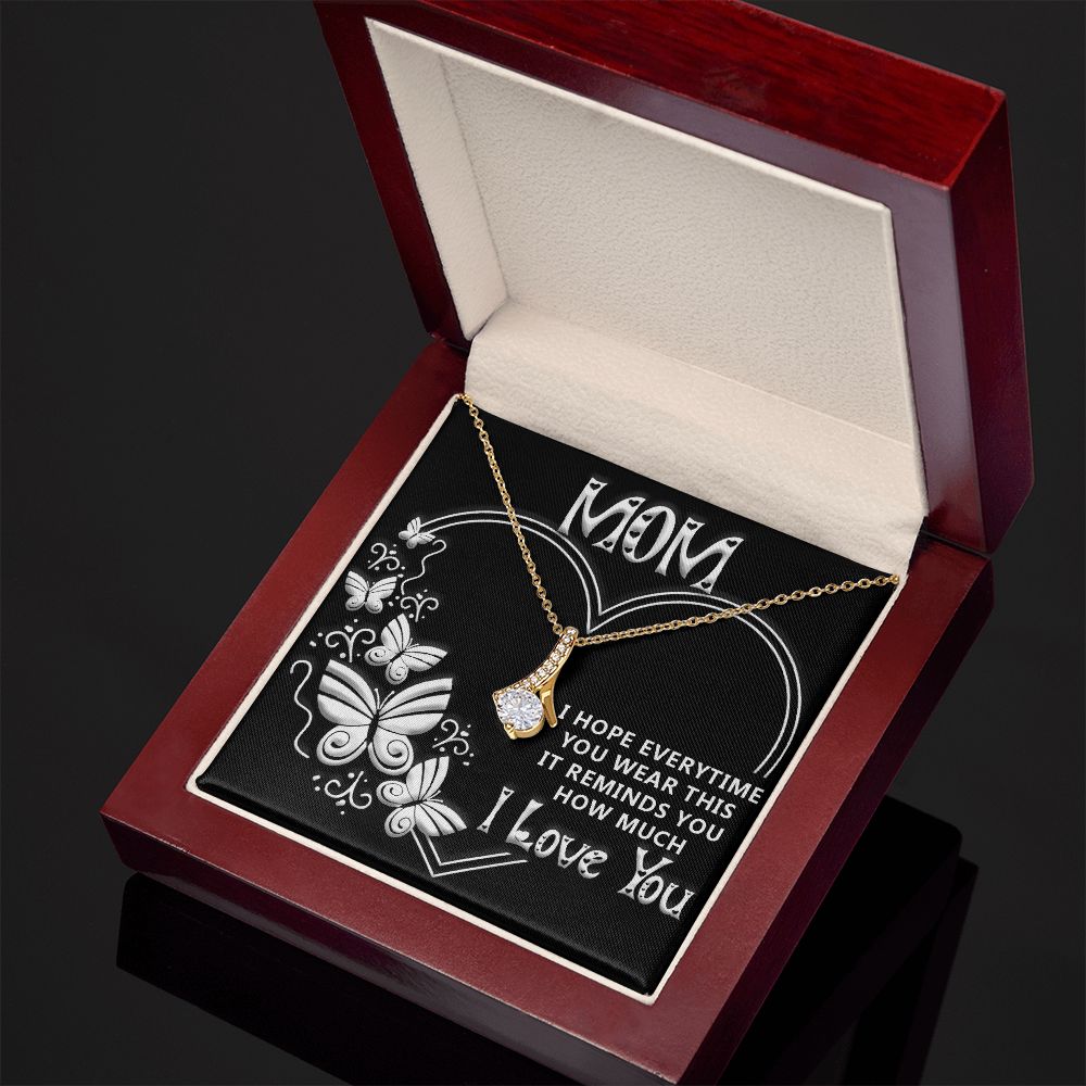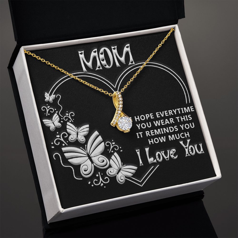 Imagine her reaction when she opens this stunning gift! The Alluring Beauty necklace features a petite ribbon shaped pendant that is sure to dazzle your special someone. Whether it's a birthday or anniversary, make sure to get her a gift she will love for years to come.