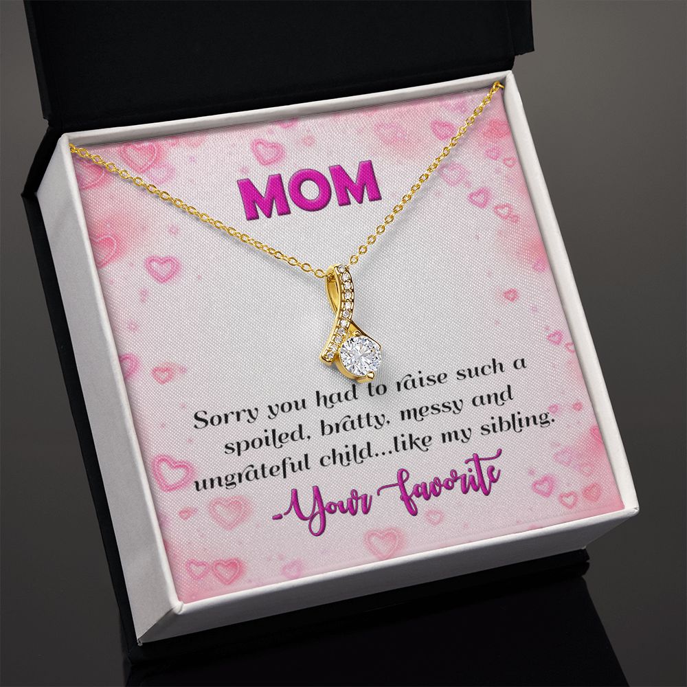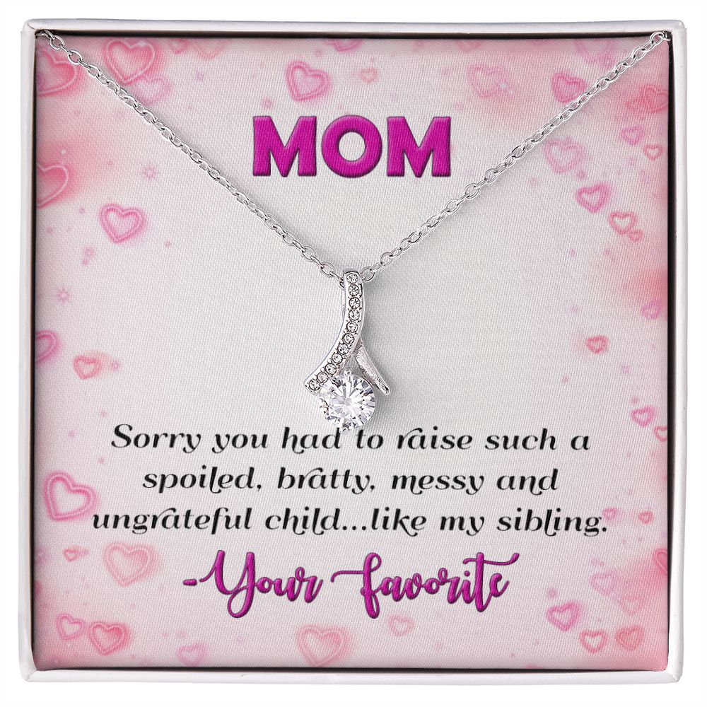 Imagine her reaction when she opens this stunning gift! The Alluring Beauty necklace features a petite ribbon shaped pendant that is sure to dazzle your special someone. Whether it's a birthday or anniversary, make sure to get her a gift she will love for years to come.